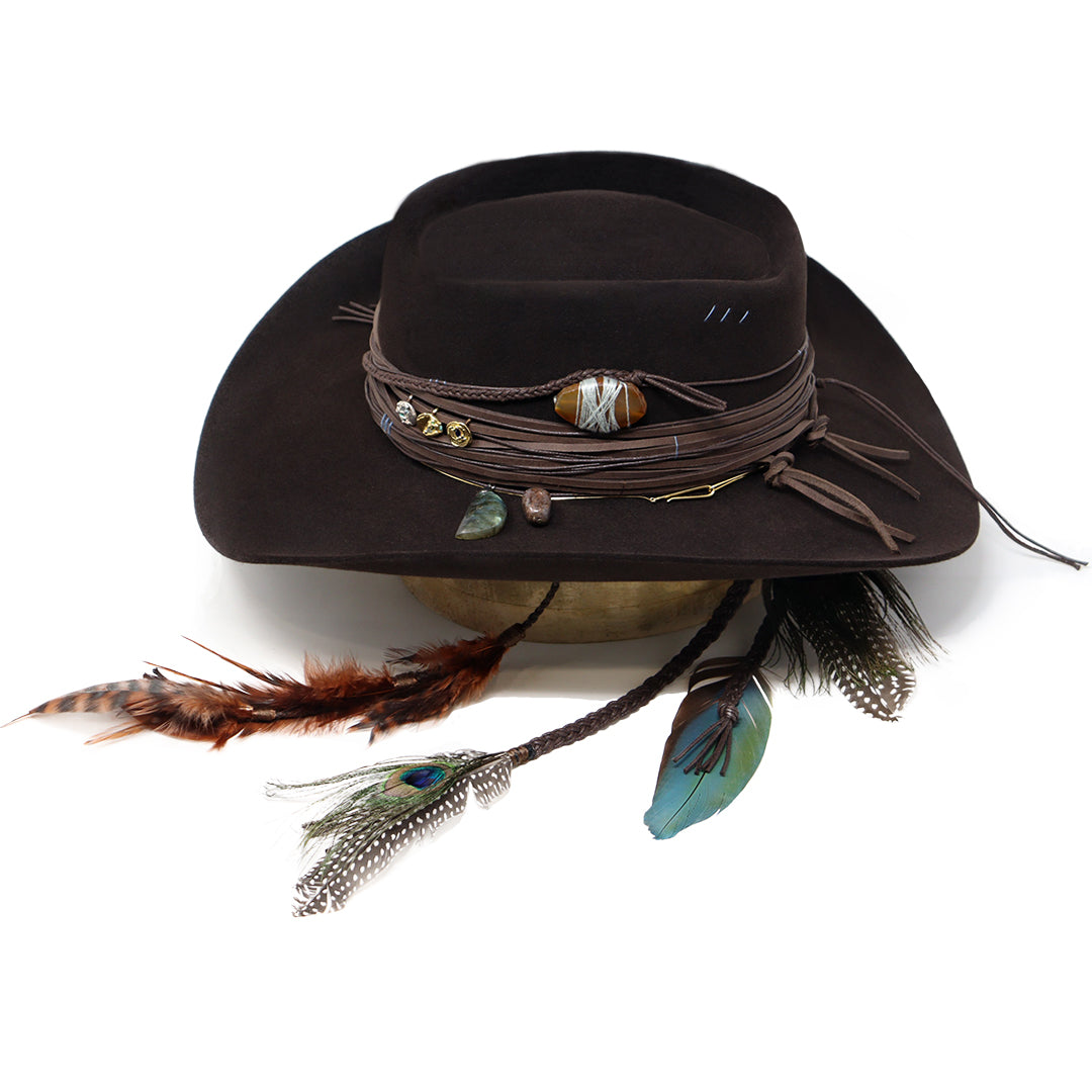 Add flair with accessories like feathers, gemstones, ribbons, and cords. Explore unique styles such as burning, cutting, distressing, painting, and more to make your hat truly yours.