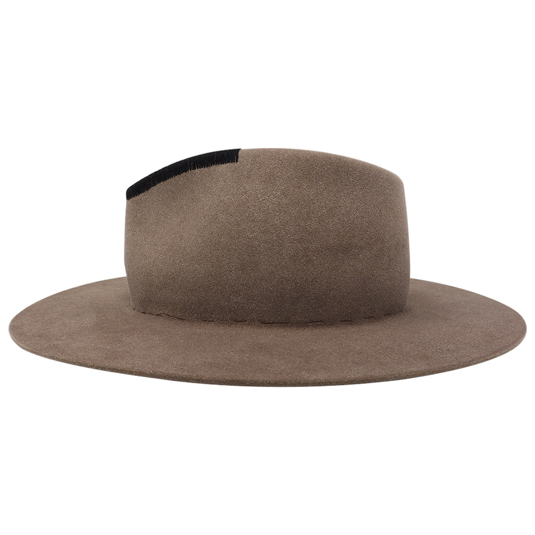 El sombrero artesanal "Giorgio" de la diseñadora Luisa Ferne, es hecho a mano con material de pelo de castor. Estos materiales se caracterizan por ser los mejores para crear un sombrero de nivel.