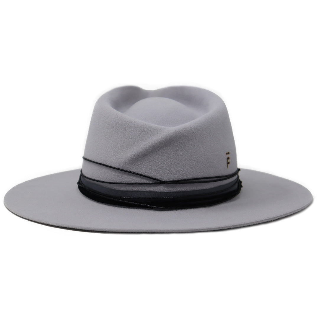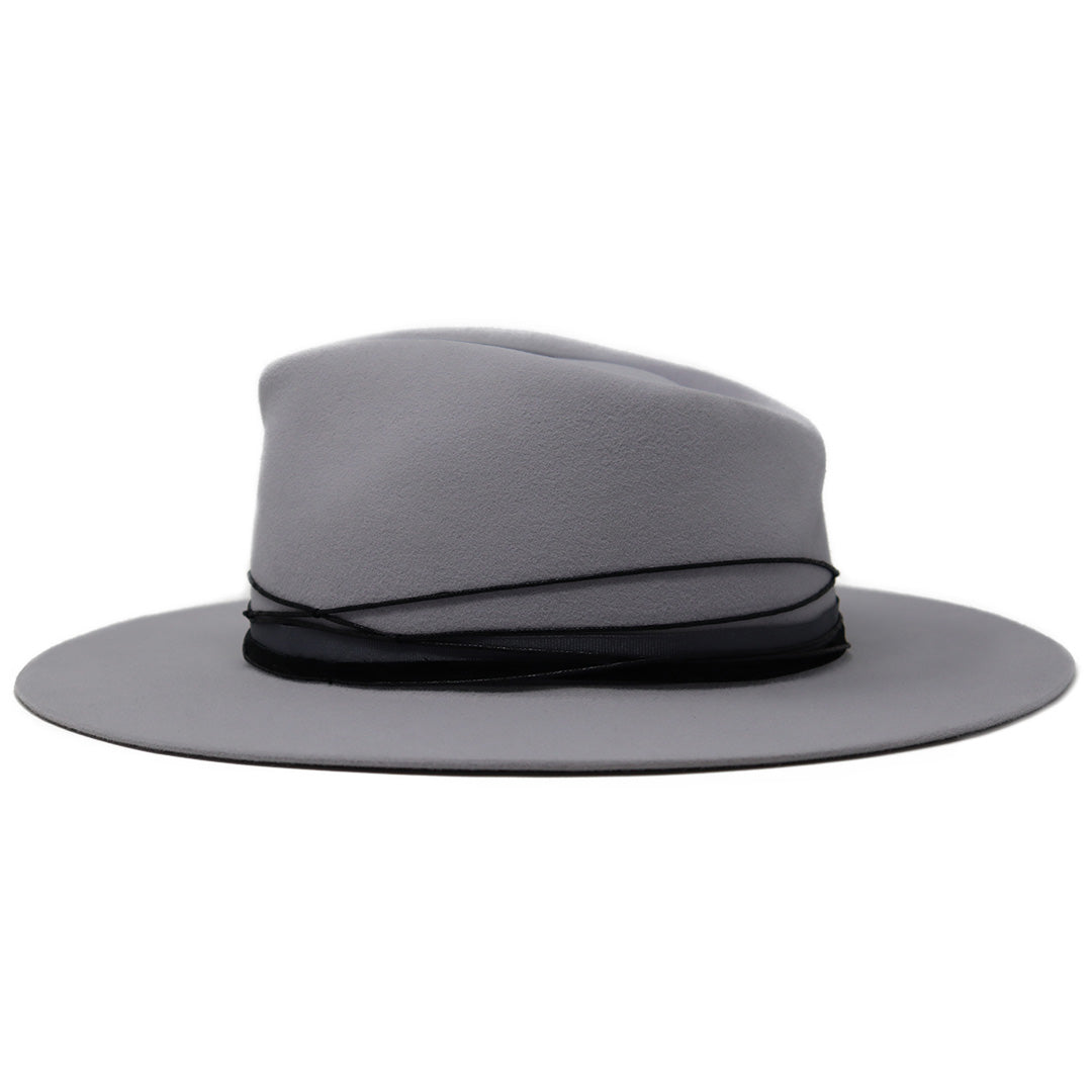 El sombrero artesanal "Infinity" de la diseñadora Luisa Ferne, es hecho a mano con material de pelo de pelo de conejo. Estos materiales se caracterizan por su alta calidad, suavidad y brillo.